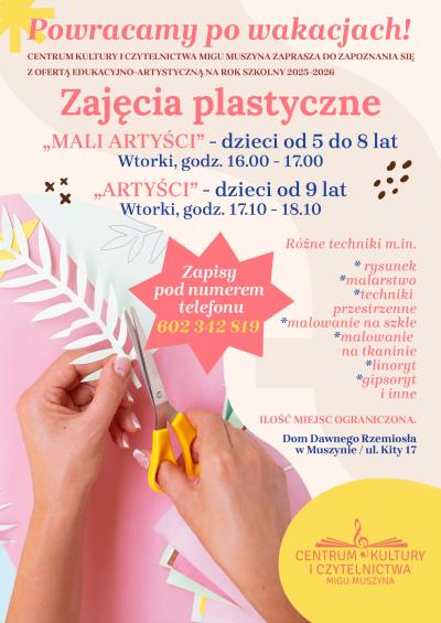 ZAJĘCIA ARTYSTYCZNE 05.03.2024 10:28 Treść ZAJĘCIA WOKALNE TANIEC NAUKA GRY NA INSTRUMENTACH ZAJĘCIA PLASTYCZNE I CERAMICZNE OFERTA DLA DOROSŁYCH HARMONOGRAM ZAJĘĆ ARTYSTYCZNYCH 2024/2025 PLIKI DO POBRANIA PŁATNOŚCI ZA ZAJĘCIA Facebook Twitter Email Drukuj